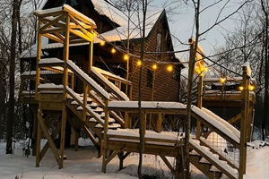 Cozy fire pit, with plastic chairs, perfect for relaxing evenings under the stars. Ample seating for everyone.