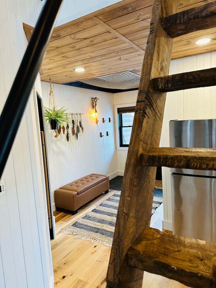 This dreamy second-story loft is accessible only by a ship’s ladder, adding an adventurous yet intimate feel.